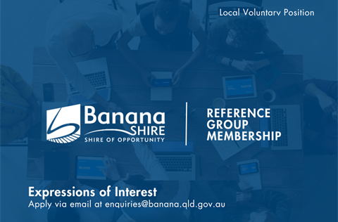 Local Reference Group Membership Published on 16 December 2025 Banana Shire Council has recently created a new advisory committee of Council to provide advice to Council on projects to be funded under renewable energy projects Community Benefit Arrangements.Council is currently looking for seven members to be members of the advisory committee which will be jointly chaired by Mayor, Cr Neville Ferrier and the CEO of Coexistence Queensland, Mr Warwick Squire. Tagged as: , Public Notices