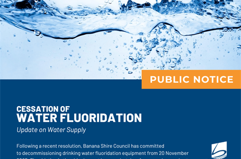 Cessation of water fluoridation Published on 24 October 2025 Banana Shire Council resolved to cease the fluoridation of water at the Biloela and Moura water treatment facilities. Tagged as: , Public Notices